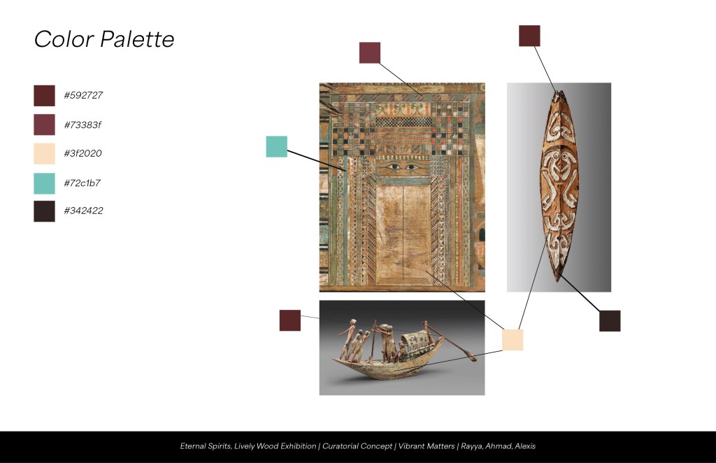 The color palette were selected based on similar colors present within the the artifacts. Initially, we observed similarities of colors in their flags however, we felt that the connection was not as strong enough because the connections was formed from modern flags.